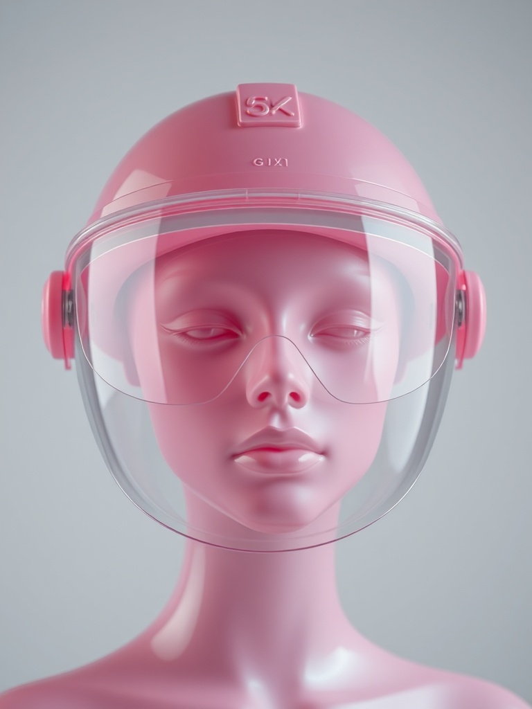 A futuristic visor helmet made of soft pink taffy and hard candy glass, studio close-up, hibiscus reflections, premium editorial object
