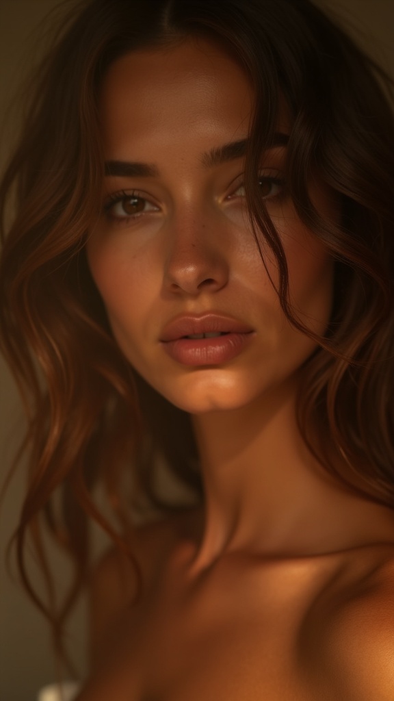 A close portrait of a woman with soft brown ash and smoke curling behind her like a veil, warm skin light, dramatic editorial mood